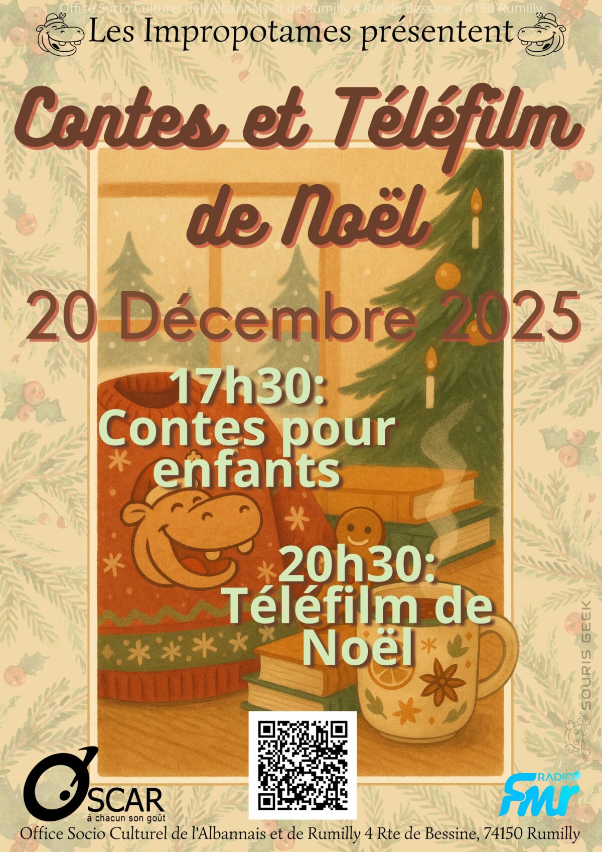 Le 20 décembre 2025, Les Impropotames vous invitent à une soirée spéciale autour de la magie de Noël. À 17h30, place aux contes improvisés pour enfants, doux, chaleureux et pleins de surprises. À 20h30, retrouvez notre téléfilm de Noël entièrement improvisé, avec son lot de romance, de neige et de miracles inattendus. Une soirée à partager en famille.